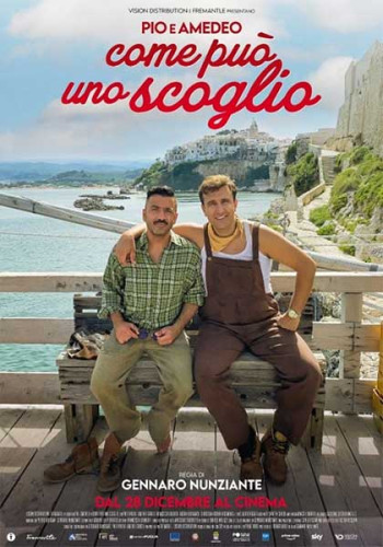 Come può uno scoglio, film diretto da Gennaro Nunziante, racconta come Pio (Pio D'Antini), un ragazzo impacciato e con un carattere per nulla forte, in seguito alla morte del padre Salvatore, erediti la gestione di diverse attività. Il genitore era un ricco costruttore che nel corso della sua vita ha sempre scelto per il figlio e lo sta facendo anche da defunto.